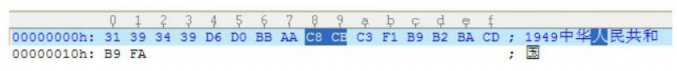 第 7 题 下图左边为“1949 中华人民共和国”的内码,从图中可知“共和国”三个字的内码为: