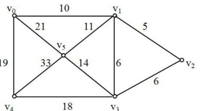第 9 题 左图给出了一个加权无向图,从顶点V0开始用prim算法求最小生成树。则依次加入最小生成树的顶点集合的顶点序列为: